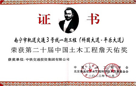 • 斬獲雙料大獎(jiǎng)!中鐵交通南寧軌道交通3號(hào)線(xiàn)項(xiàng)目再獲詹天佑獎(jiǎng)